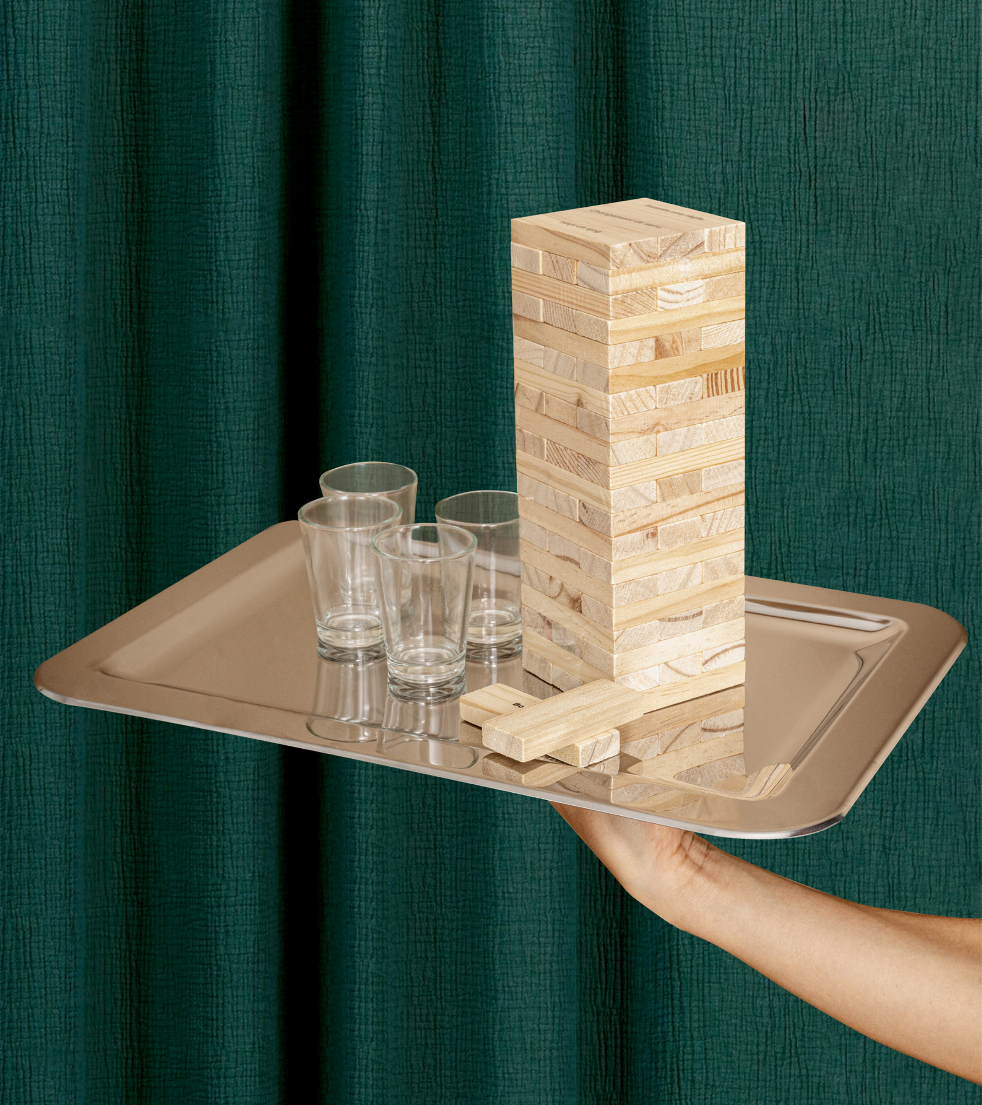 Discover an adult version of the famous wooden construction game, Kaplas! This time, each board is associated with an action to be performed. If the tower collapses, the guilty player will have to down a gulp (or even two). A fun game that promises lively evenings with friends!